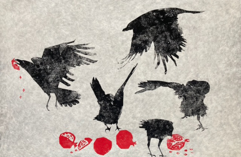 Hungry Brids 1: Holzschnitt/ Papierschnitt 2022, 25 x 37 cm