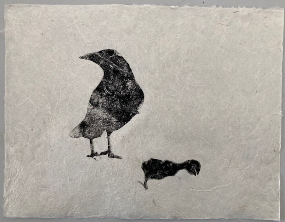 Toter Vogel, Holzschnitt, 2020, 35 x 25 cm