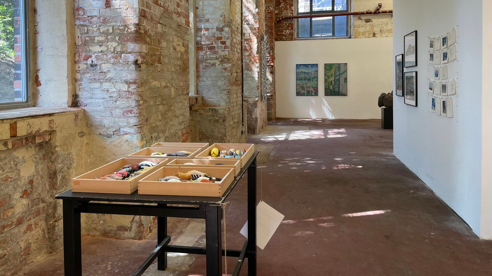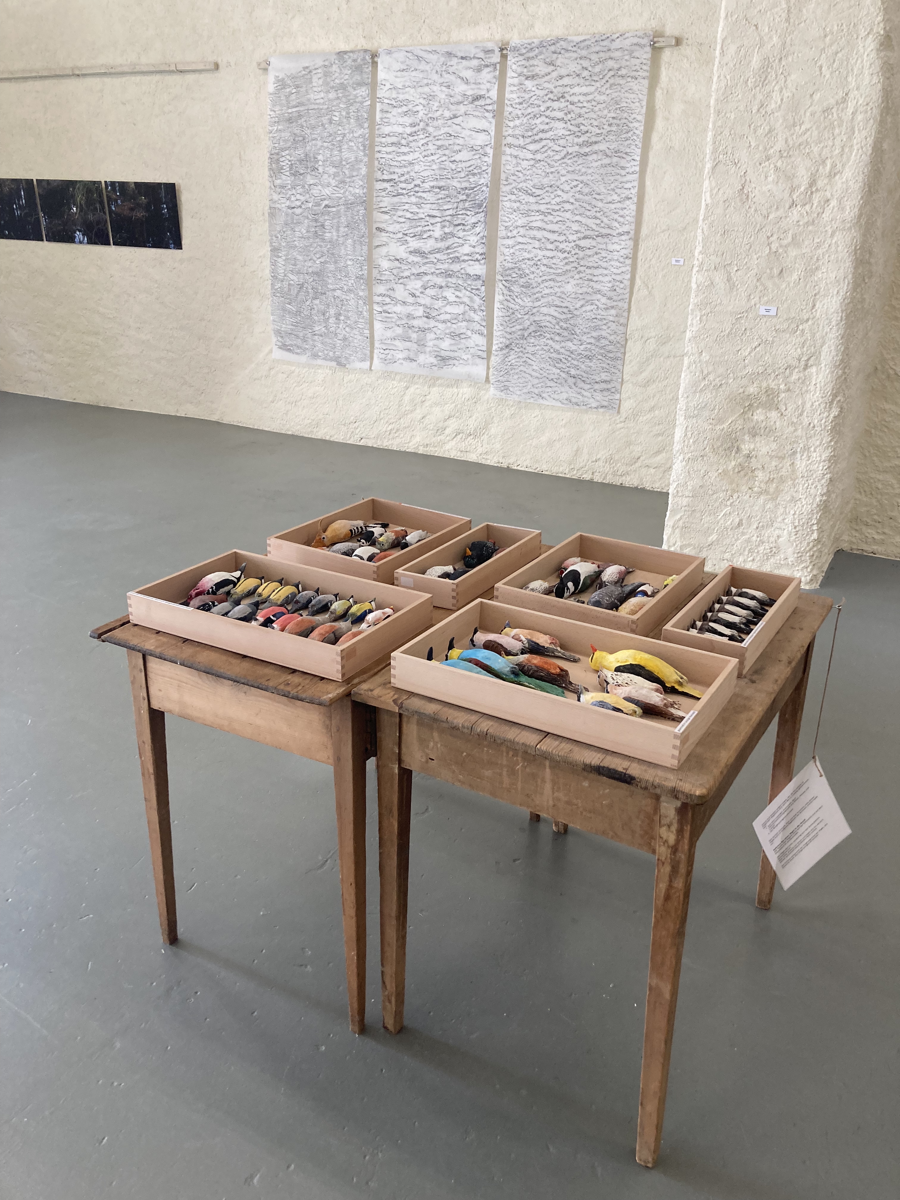 Die Installation zu drei Schaukästen: Von Vögeln, die im Wallis sind, von