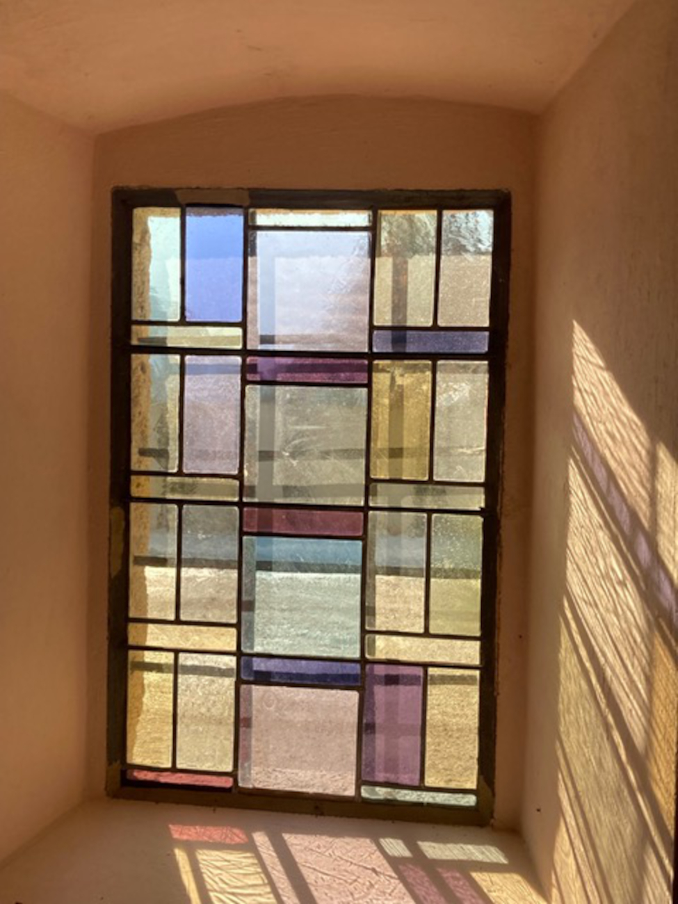 Restauriertes Fenster Eingang, mundgeblasenes Glas, Bleiruten, 100 cm x 250 cm