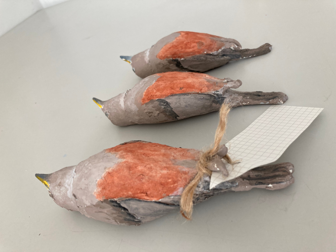Erstellung der Vogelbälge anlässlich der Werkschau der Gastkünstlerin Ursula Böhmer, Artist in Residence Brig, 2023