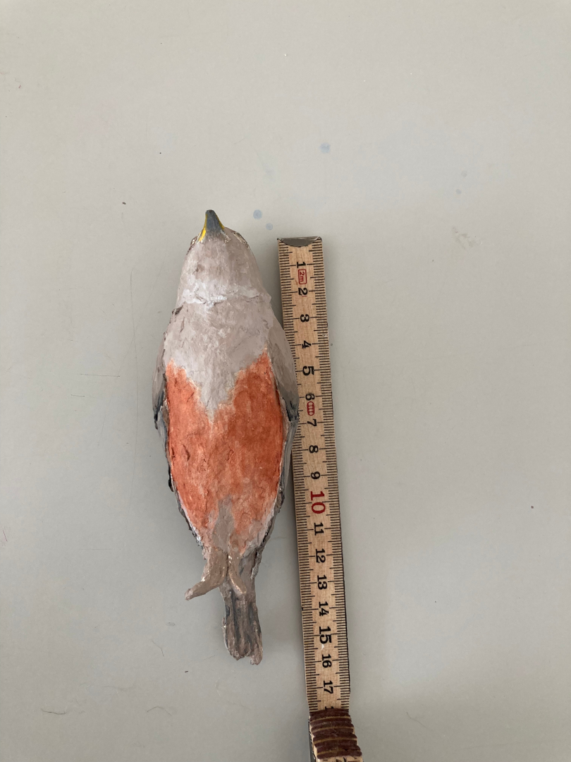 Vogelbälge, Alpenbraunelle, Holzmehl, Acryl, 2023