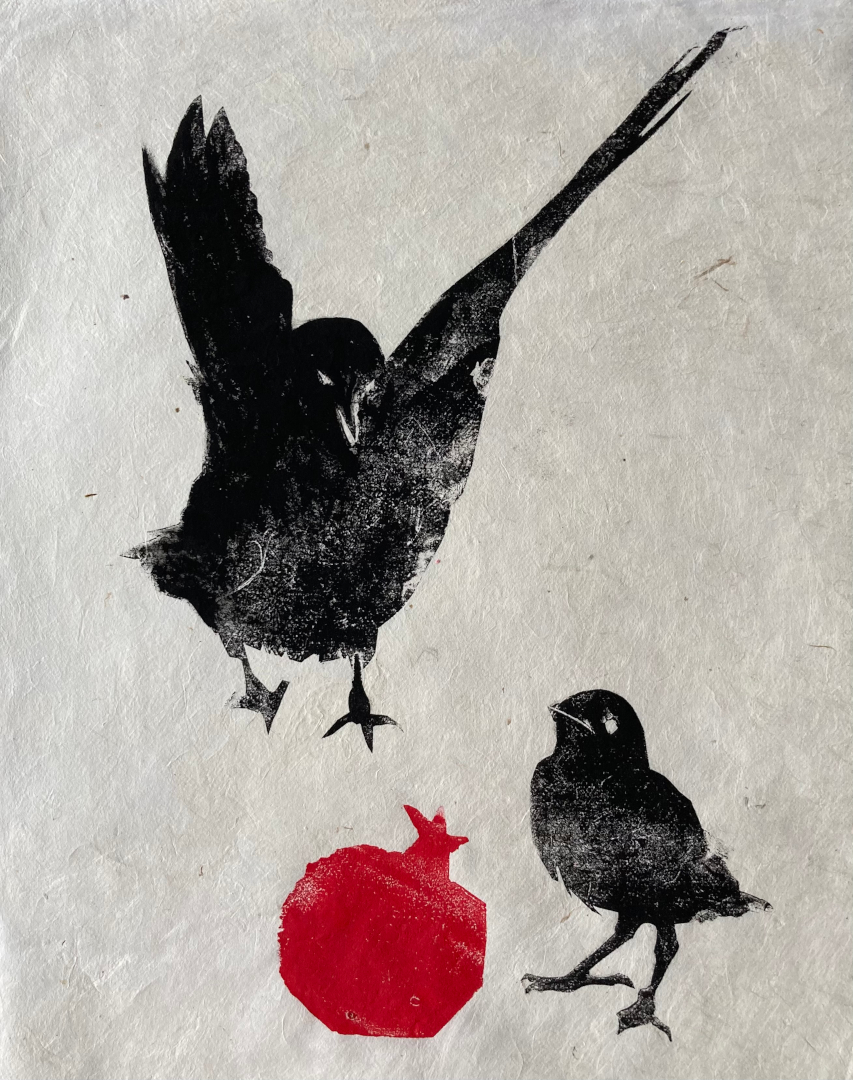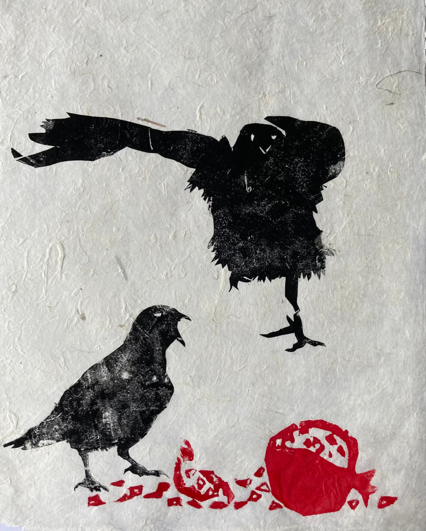 Hungry Brids 1: Holzschnitt/ Papierschnitt 2022, 25 x 37 cm