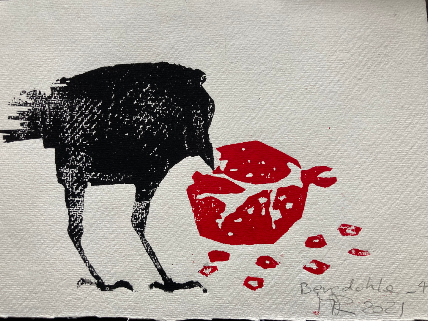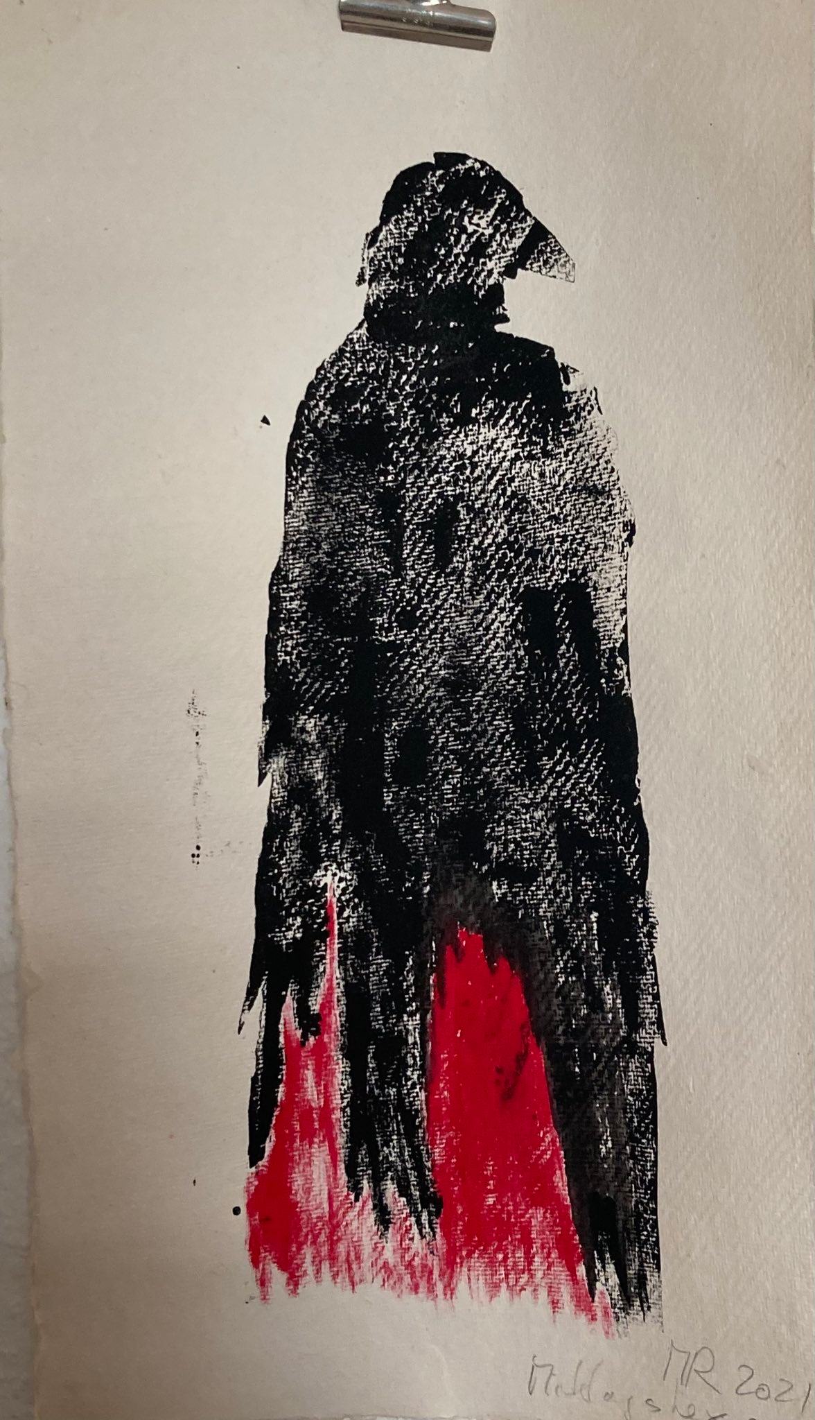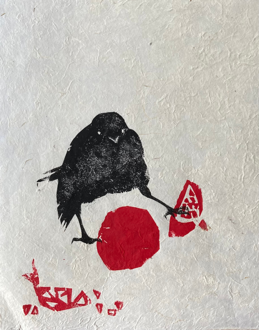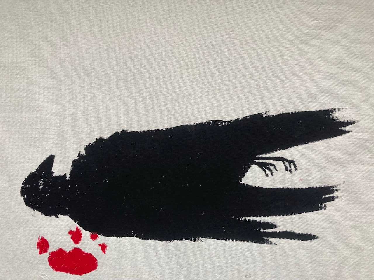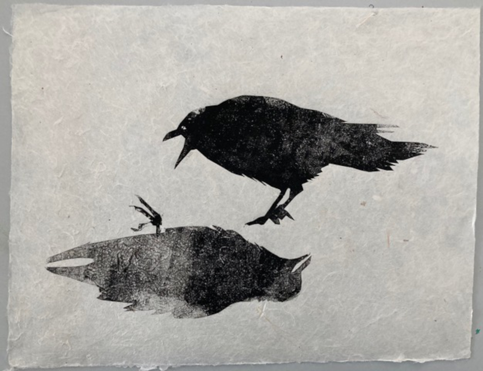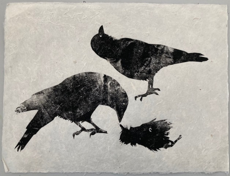 Toter Vogel, Holzschnitt, 2020, 35 x 25 cm