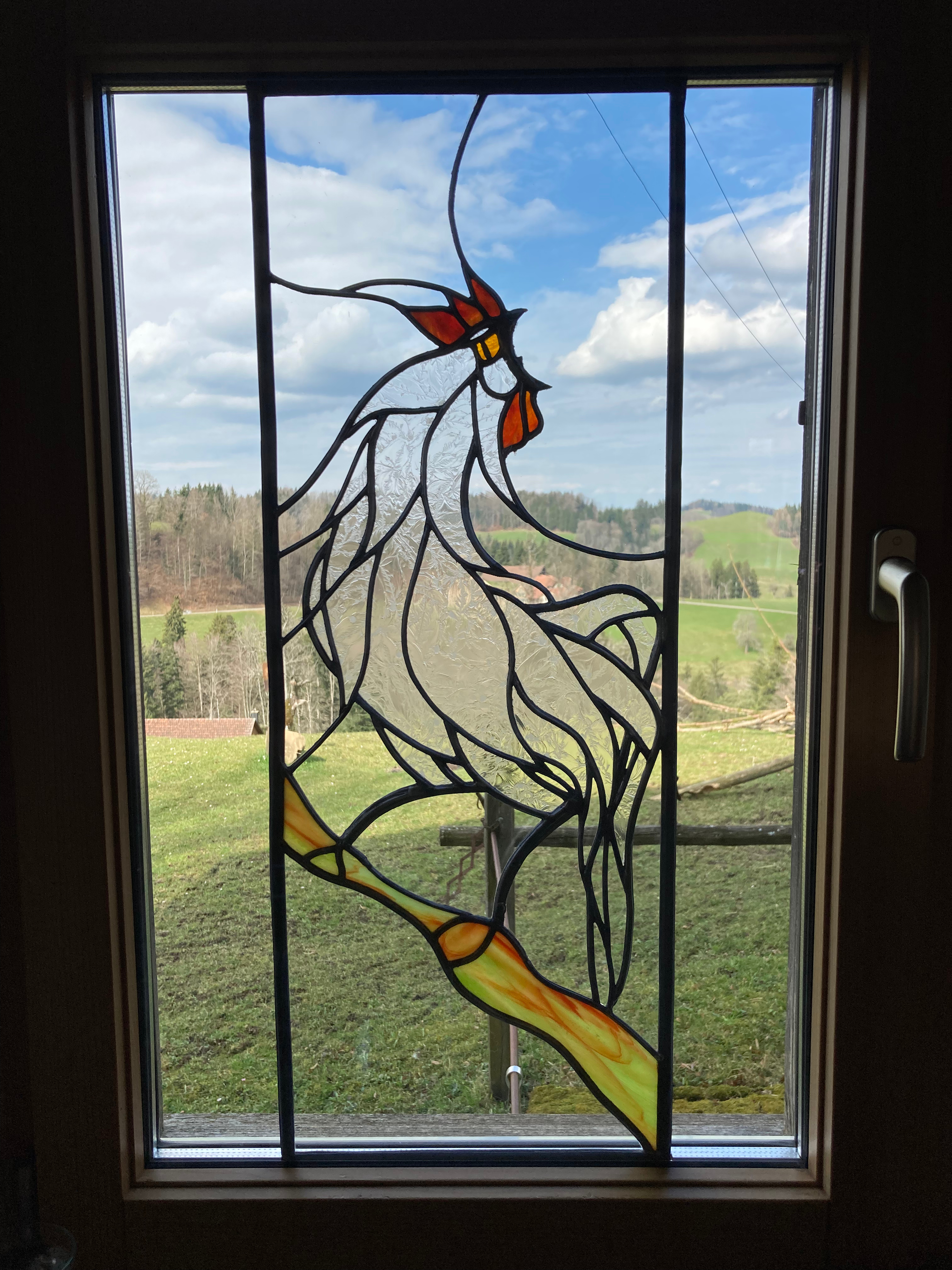 Der Giggel steht stellvertretend für zahlreiche Kunstglaserarbeiten in Privatbesitz