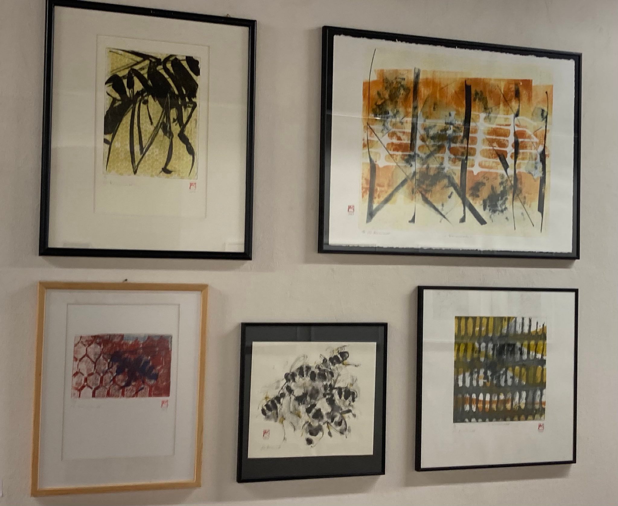 Bildinstallation Annette Kummer, Bienenflug, Radierung, Transferdruck, Tusche, Monotypie 2019-2025